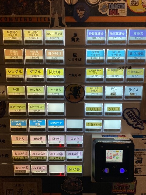 2年前の券売機。豚チャーシューは未登場で和え玉は数量限定だった。