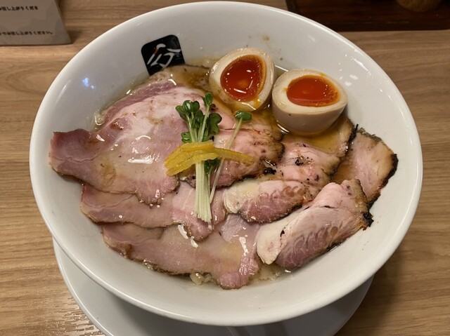 昔は鶏だけだった。現在は鶏チャーシューと豚チャーシューの2系統で各々ラーメンとつけ麺がある。何も絶品。