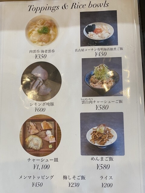 チャーシューは醤油と塩ではラインアップが異なり、この点も店の拘りを感じる。特上醤油のチャーシューは焼豚・吊し焼・日替り叉焼の三種で何れも肉厚で食べ応えがあって美味しい。このチャーシュー目当てで来ているお客さんも相当いると思う。