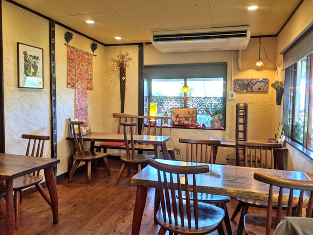 今日は休みなので妻とランチに行ってきました。私はいつものようにラーメンか沖縄そばしか頭に浮かんでいませんでしたが、妻がインスタで気になっていたという、糸満市西崎にある『土〜夢ごはんカフェ』に行ってきました。店舗までお店は西崎運動公園の北東側にあります。住宅地にポツンとあるので、初めての方は少しわかりずらいかもしれません。ですが、近くに来ると案内の看板が出ているので安心です。駐車場は店舗前と横にあります。食べログによると20台も駐車できるようです。今回オープンしたばかりの11頃に行ったのでスムーズに駐車することができました。早速駐車して店舗へ!お店は平屋で、木々に囲まれとても素敵な雰囲気です。入口は古民家のようで扉を開くまでは少しドキドキ。中へ入っていきましょう。と、その前に!黒板を見てみると案内がありました。多人数で来店する場合は、人数が揃ってからの案内となるようなので気をつけましょう。それでは店内へ。店内店内にい入ると、一般家庭のような玄関になっており、そこでまず靴を脱いでから入店します。店内は落ち着く照明に琉球テイストで、木彫のテーブルと椅子がまたGood!続きはこちらから↓https://okinawa-aruki.com/doumugohan/