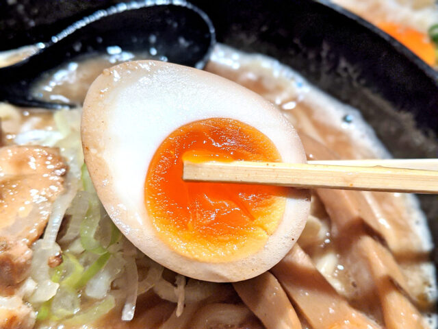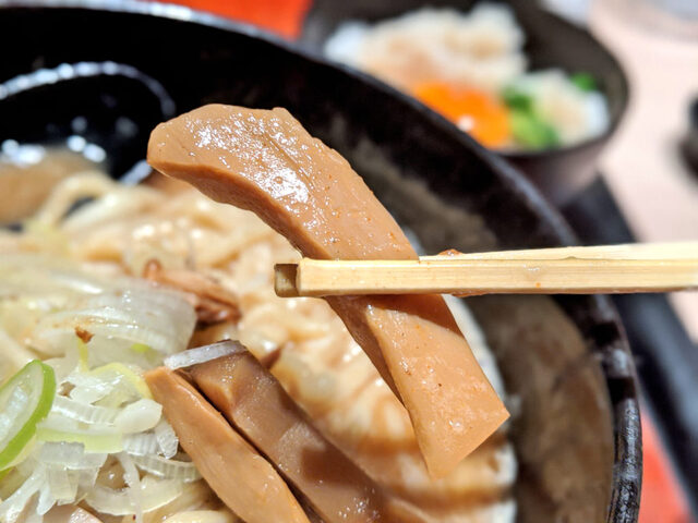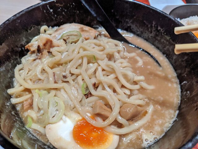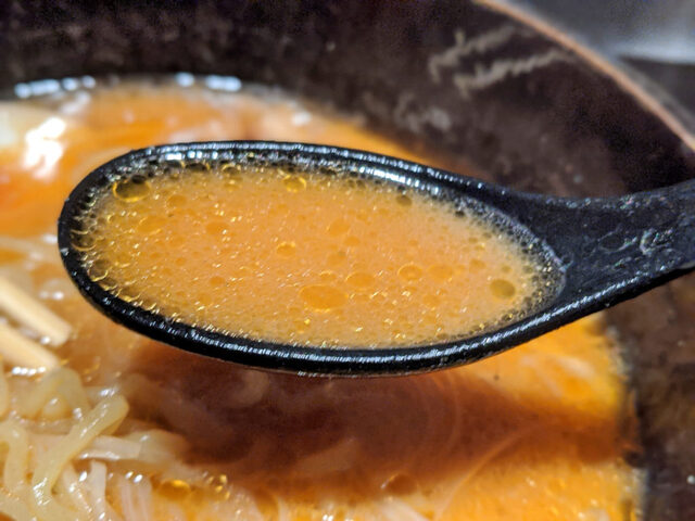 そしてスープはすっきりめのスープで、先ほどの辛みそを入れるとまたパンチが効きます。