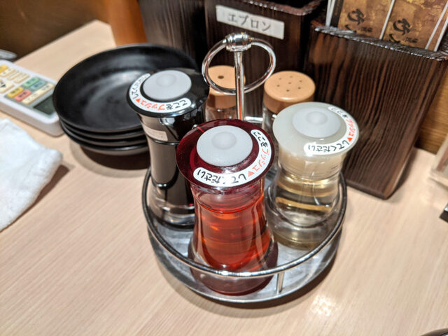 今日は新都心にある『麺匠竹虎沖縄新都心店』に妻と行ってきました。以前近くで飲んだ〆に行ったことがありますが、その時は酔っぱらっていたので今回は初シラフでの来店でした。店舗までお店は新都心の飲食店が集まるエリアにあります。新都心だと駐車場は無いかと思いましたが、店舗横に6〜7台ほど駐車することができます。ですがお昼頃はいつもいっぱいしています。今回もすでに満車近くでしたが無事に駐車することができました。そして、店舗は大きく看板が出ているのですぐに分かると思います。虎の看板がなんだか印象的ですね。さらに店舗前には食品サンプルが並んでいます。飲んでいる最中に目につくと、思わず入ってしまいそうですね。それでは店内へ入ってみましょう。店内席は24席あります。カウンター席×62名席×14名席×36名席×1となっていて、複数席は個室になっています。今回妻と2人だったので2名席に案内していただきました。2名にしては結構広々としていたのでもしかしたら4名席かもしれません…個室にもエアコンが付いていてリモコンもあるので好きなように温度を調整できる贅沢な空間です♪因みに2020年4月1日より店内禁煙となります。たばこを吸わない私たちにとってはすごくありがたい。そして卓上調味料はこんな感じ。エプロンがあるので女性にも嬉しいですね。オーダーコールにも虎が描かれていて渋いです。それでは今回私たちが注文したのがこちら。虎ダレ味噌ラーメンまずは妻が虎ダレ味噌ラーメンを注文。器やお盆がなんだか高級感漂いますね。虎ダレと辛みそが別皿で提供されます。虎ダレはにんにくの入った油だそうです。辛みそは結構辛いのではじめは入れすぎないように気をつけましょう。スープがたっぷりなので少し見ずらいですが、白髪ねぎ、味付玉子、チャーシュー、メンマがトッピングされています。麺は割と細めでした。そしてスープはすっきりめのスープで、先ほどの辛みそを入れるとまたパンチが効きます。続きはこちら↓https://okinawa-aruki.com/taketora/