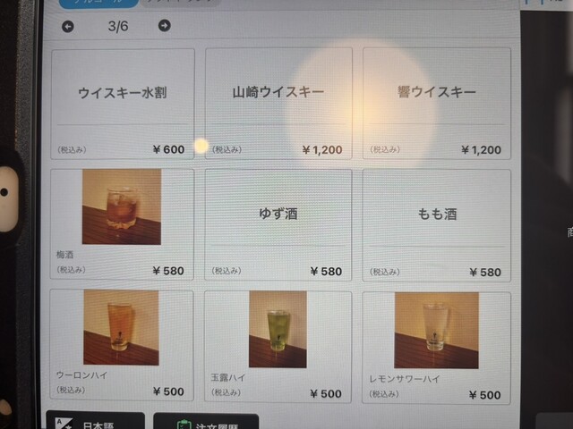注文はタブレットから。前回訪問した際は無かった新仔の鰻があるとのことで、私は新仔の鰻重を注文。ビールをお願いし、鳥の唐揚げ、鯉の洗いを合わせて注文します。