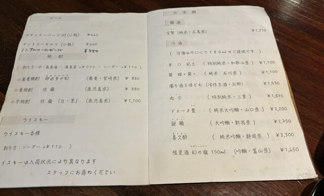 店内は壁に向かったカウンターが6席、4人掛け2卓、2人掛けが1卓。向かって右側の4人掛けに通されます。