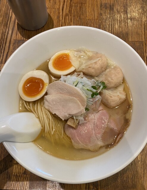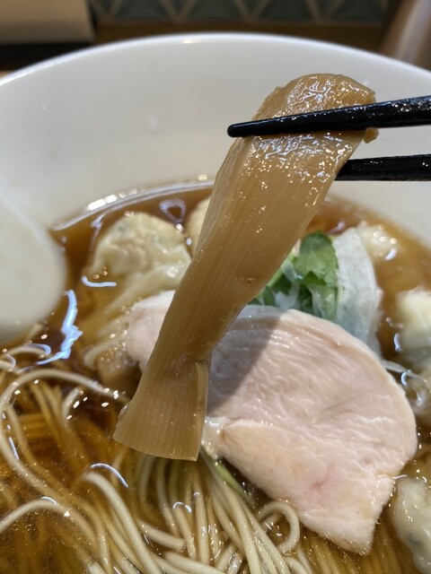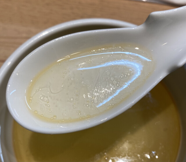 黄金色の澄んだスープをひと口飲むと鯛出汁のすっきりした味わいでうんまい!