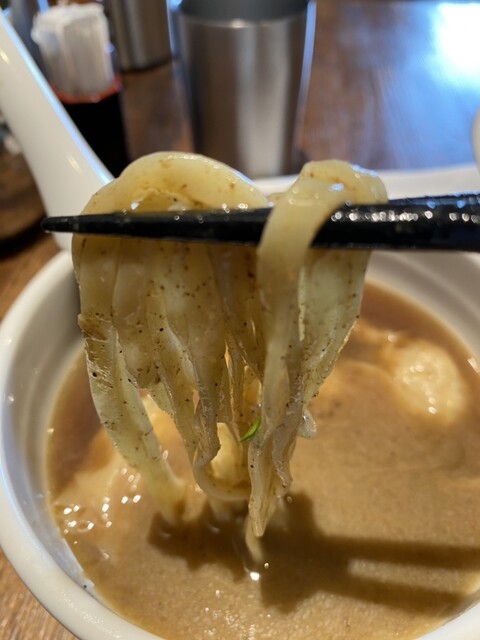 麺をスープに浸して啜ると麺のもちもち感とスープが絡んでまいうー☆☆☆