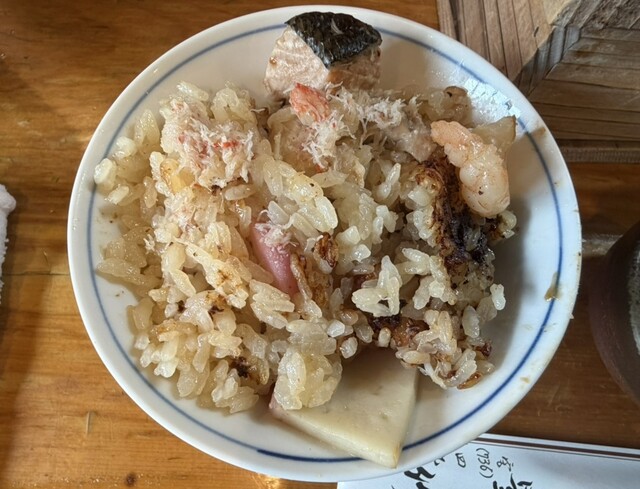 具材は鮭、蟹、海老、鶏肉、蒲鉾、筍等で五目以上…