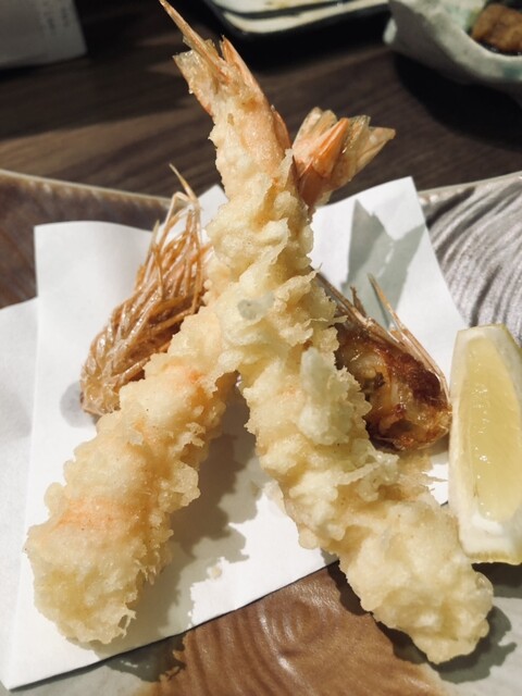お刺身&天ぷらの海老は水槽の中から生きた海老を使って出していただきました