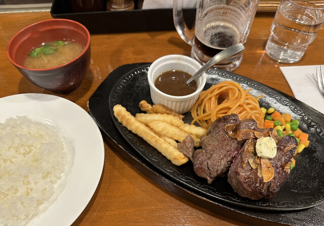 12時を少し回ったお昼時だが、一人なのでそれほど待つことはなく調理場の様子がよく見えるカウンター手前の席につく。お肉をモリモリいただきたい気分だったのでリーンステーキの250gにした。塩胡椒がやはり良いが後半はソースでいただいた。次はマルキンにしようかなどと思っていたがリーンでも十分満足できる。