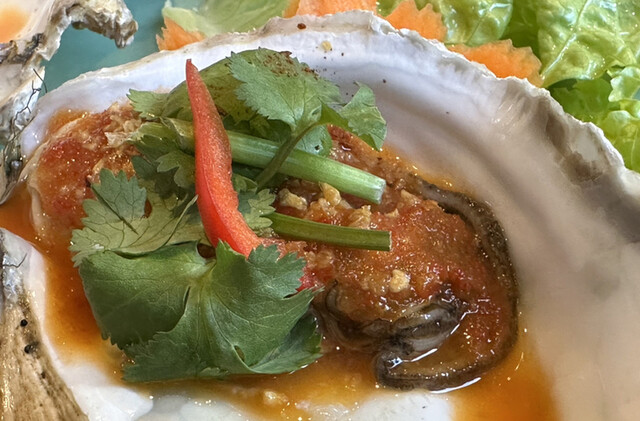 ホイナムロンチェーナンプラー、生牡蠣の辛ガーリックソース