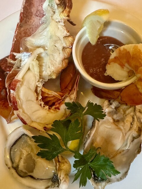 ウルフギャングよりも、照明が暗くシックな雰囲気です。一方でスタッフの方々は気さくな方もいらっしゃいますので、リラックスして食事が取れました。前菜からシーフード(国産の生牡蠣、エビ、ロブスター)盛りだくさんで、期待が高まりました。次に燻製ベーコンの入ったサラダ、そしてメインのシャトーブリアンとサーロインのTボーンとちょうどいい提供時間。お酒を楽しみながら感動的な美味しさを体験できました。費用もこちらの方が良心的でした。前回はワインの値段が張ったのかな??笑今回はビール2杯とグラスのピノノワール1杯。