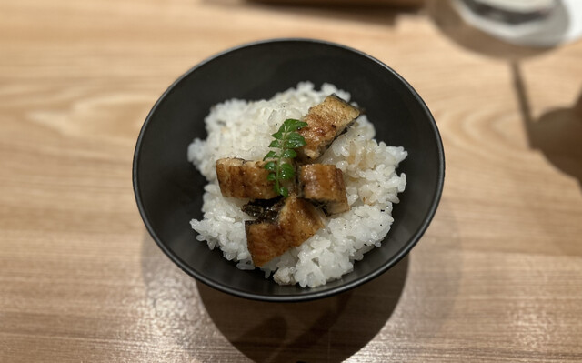 土鍋で炊かれたツヤツヤの明神米、四万十鰻と有馬山椒を混ぜていただくとシメにピッタリの一品でした。炊き上がるまでに約40分かかるので、早めの注文をおすすめします。