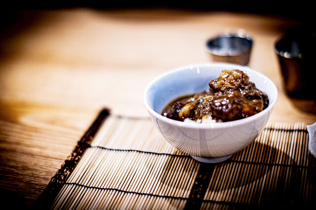 個人的には黒鮑の出汁に、辛子と、天狗舞秋おろしのマリアージュが絶妙で、イメージ高級なおでんを食べている感覚に味覚がぐるっと一回転するような、天狗舞のメリーゴーランドがよかったです。