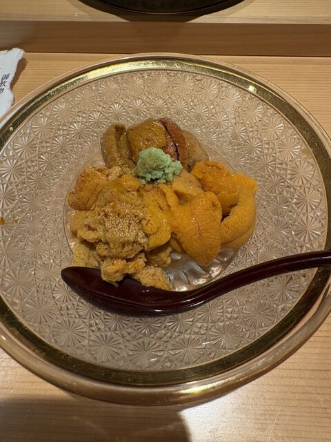 もう5回目ですが、今回は美人大将がお休みで、林郷さんという2番目大将が対応してくれました。雰囲気も良く、美味しいお鮨を頂き、男同士の話も弾み、とても楽しい時間を過ごすことが出来ました。雲丹の三種食べ比べ、海老、づけマグロ、中トロが特に美味しくいただきました。又、行きます。