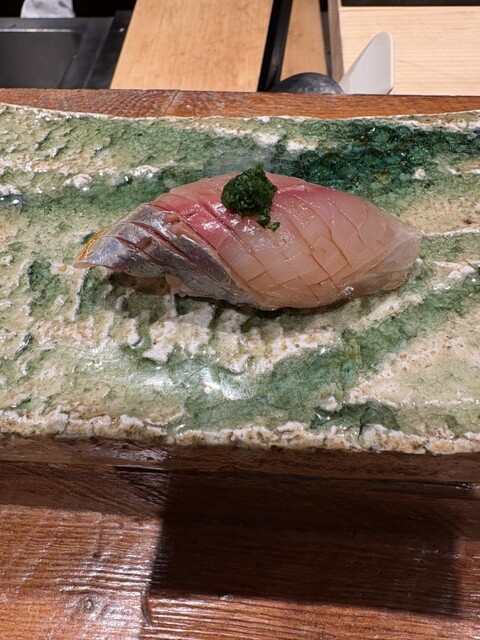 新橋駅近くの美味しいお鮨を探して行き着いたお店。平日の昼間ですが、予約のお客様でいっぱいでした。予約はmust。いつも昼間もいっぱいだそうで、外人のお客様も一定数いる様です。お鮨はどれも美味しく、中でも煮帆立やコハダ、手巻きの卵黄の醤油漬けとトロ、づけ鮪赤身などが美味しかったです。「がり」が、黒っぽく酸味が抑え気味で特徴があって、美味しくて、ジンジャーエールにも、レモンといっしょに入れていて、美味しかったです。又行きます。