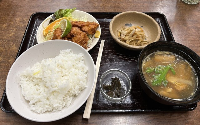 白川通から少し入った所で目立ちにくい立地ですが、知る人ぞ知る北白川の名店!今回は「日替り定食(¥800-)をいただきました。のっぺい汁と唐揚げのセットですが、唐揚げはチェーン店では滅多に出てこないアツアツ。具沢山ののっぺい汁もムッチャあったまる!ご飯もタップリでホントお腹も気持ちも、バッチリ満足!ついでに、「すき焼き定食」はコスパとリッチ感バツグン、自分へのご褒美にしています。