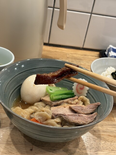 麺を噛むと広がる豊かな小麦の香りに、甘いタレと脂が絡み、多幸感に包まれる。