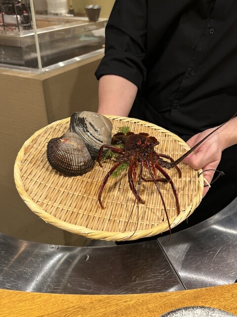 生きたままの伊勢海老や新鮮な魚介を見せていただき、