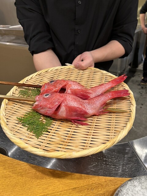 金目鯛を串に刺して炭火で焼いた一品は、香ばしさと脂の甘みが絶妙で忘れられません。