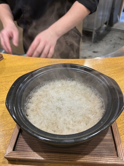 締めの河豚雑炊は、満腹でも食べられてしまう美味しさ。