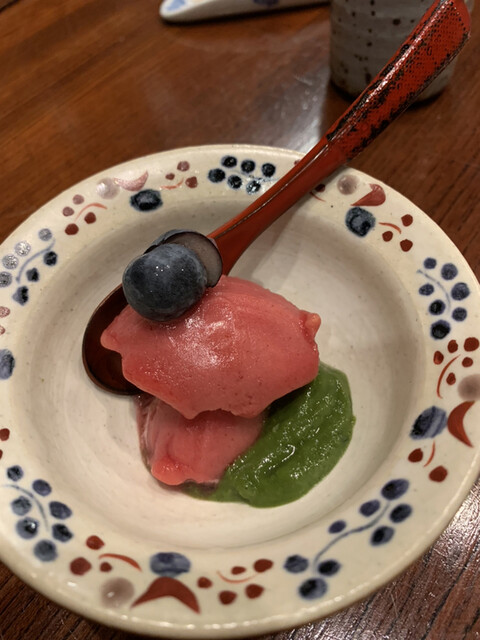 今回は豆腐のジェラートにいちごソース。