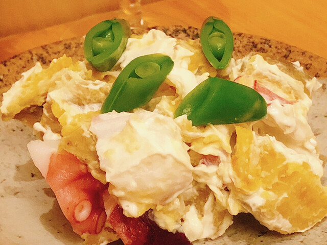 経験したことない食べ合わせだが美味しい。安納芋とマスカルポーネの濃厚な甘みと蛸のプリッとした噛み応えがとっても好き。