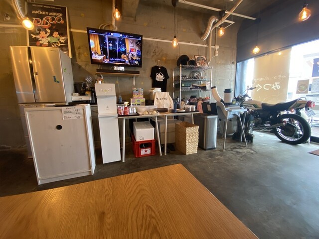 豚骨ラーメンと違い、出来上がりまで少し時間がかかりますが、店内の音楽、バイク、飾ってあるTシャツ、その他もろもろ、、、まぁ、しゃれとる