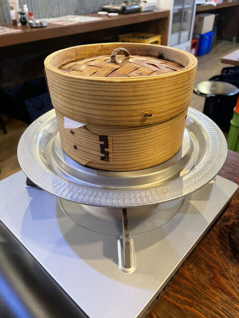 テーブルの上で蒸される豚しゅうまいは待ってる間もイイ匂いがして最高です
