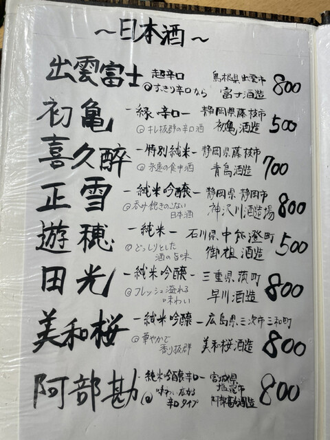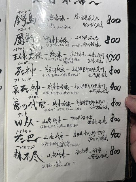 1杯目の日本酒は、初めて見た『裏死神』(大吟醸)をチョイス