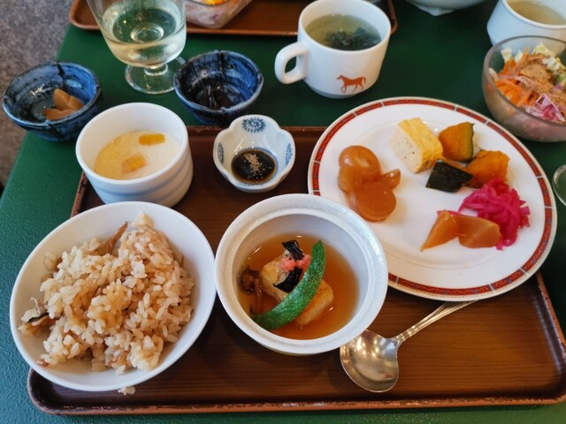 パスタ、サラダ、スープ、その他1品、ミニ青汁、ドリンク付きで2,350円でした。