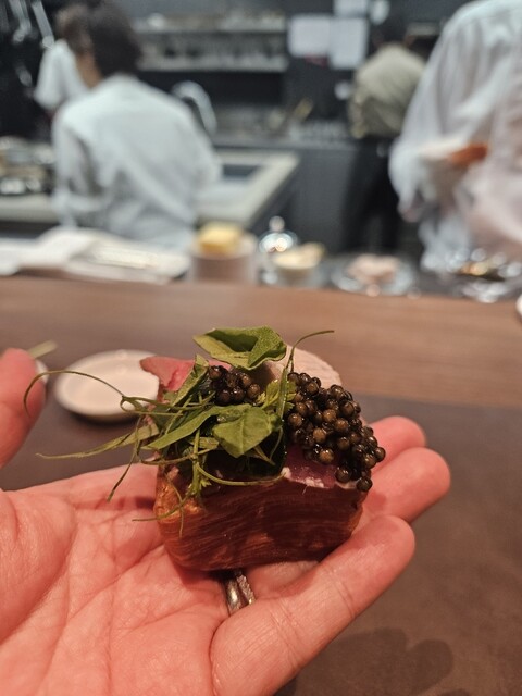 1ヶ月前に訪問した時と同じ皿はキスのクレープのみ(⇐大好きな料理のため希望しました)最高のお料理、最高のサービスでこの引き出しの多さ...クレリエール時代から感動しっぱなしです!