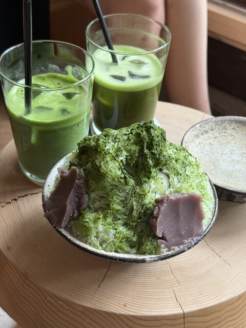 かき氷もさっぱり美味しくて、モナカも抹茶が濃厚。