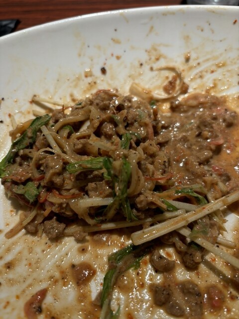 ひき肉はたっぷり入っているので麺がなくなっても ゴロゴロ残ってる