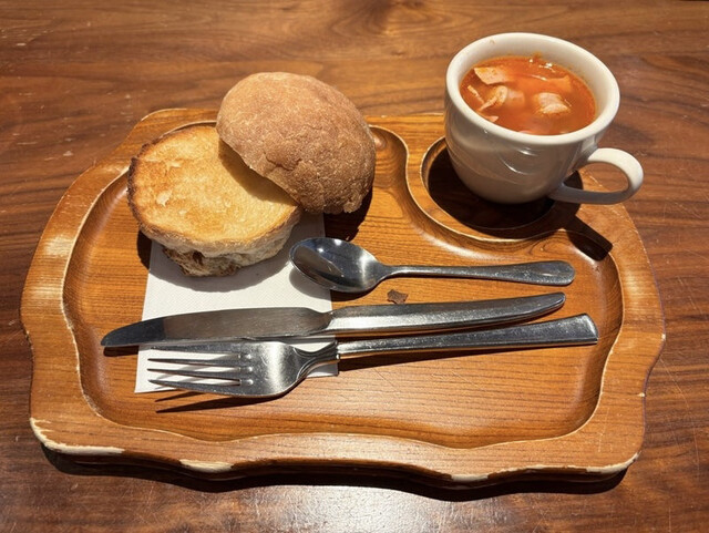 ハム屋のトマトスープは、ソーセージやハムがゴロゴロ入っていて具沢山です。