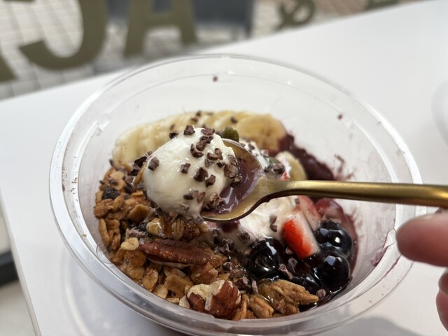 横から見ると、たっぷりのアサイーが詰まっているのがわかります。