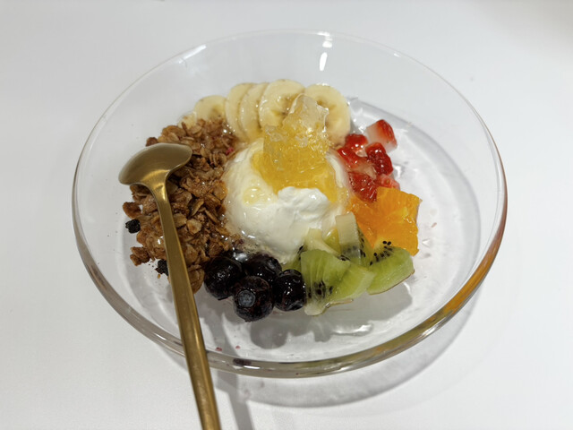 自家製グラノーラ、イチゴ、キウイ、ブルーベリー、バナナなどのフレッシュなフルーツがたっぷり入っています。