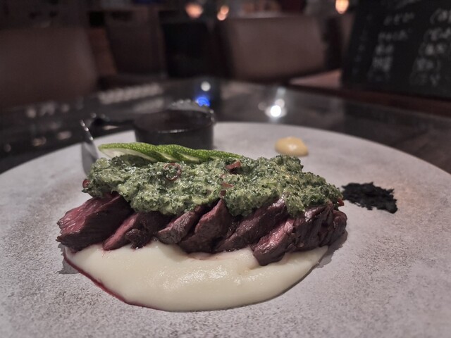 フレッシュハーブたっぷりのソースがお肉の旨みを引き立てています。