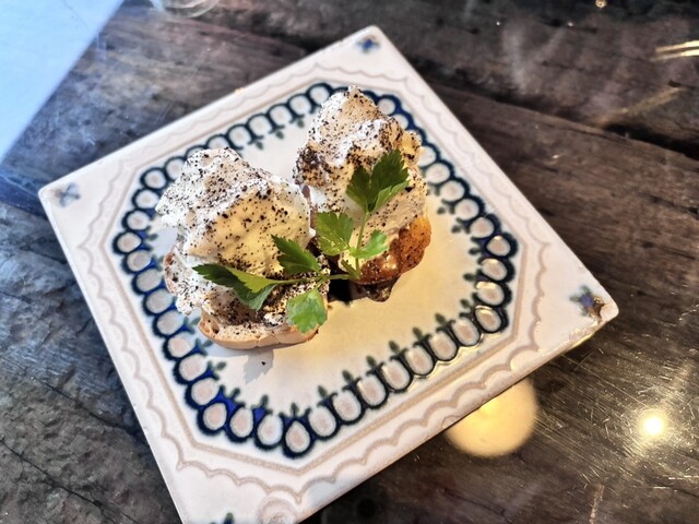 ブルスケッタは、ゴルゴンゾーラのムースがのっています。