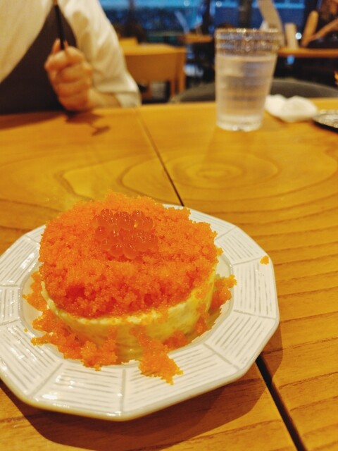 今日頂いたのは、まるでエビフライが飛んでいるような、フライングゲットエビフライ。魚卵いっぱいの痛風ポテトサラダ!長芋とカマンベールの磯辺巻。
