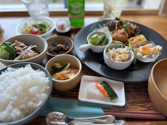 今回は初訪問と言うこともあり少し贅沢に、よくばり定食(¥2,350)と季節限定カツオたたきみぞれ丼(¥1,600)を注文。どちらもおばんざい付きですが、よくばり定食の豚の角煮がめちゃくちゃ美味しい。どちらにもついてる具沢山のお味噌汁がこれまた美味しい。店内も落ち着いた雰囲気なので、ゆっくりランチを楽しませていただきました。次は予約して伺わせていただきます。