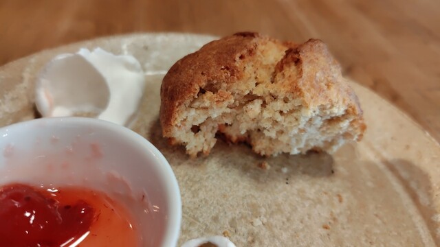 全粒粉スコーンがぎゅっとしっとり濃密に中身が詰まっていて、ランチ代わりになりました。
