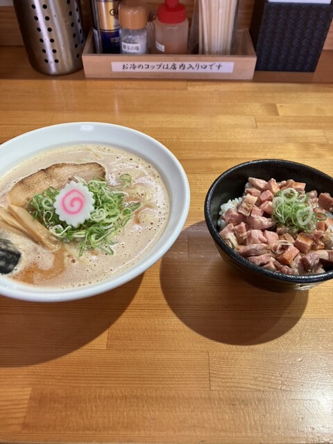 チャーシュー丼はしっかり目の醤油味がついてて単体でもかなり美味しいですが、レンゲでスープを潜らせて一緒に食べると格別!