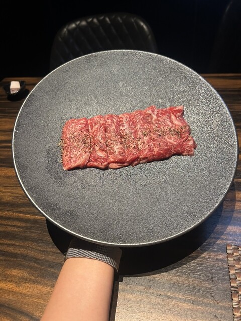 今回いただいたもの _________________________________________ 炙り生レバー 1100円 極上サーロインユッケ 1650円 焼き野菜 プラチナタンゆかり焼き 3300円 特選ロースの瞬間燻製 1870円 イチボ6枚 2200円 ちょこっとカレー 770円
