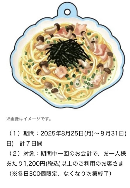 閉店前の7日間は特製スープスパゲティをモチーフにしたキーホルダーのノベルティが先着で貰えるのだとか!欲しいなぁ…