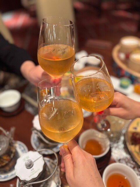 ウーロンプラムティーは、ワイングラスで提供で、また可愛くてかんぱーい