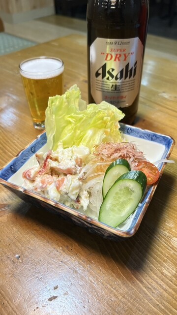 食べきれなかった場合は、お持ち帰り容器も購入(大200円、小100円)できるので安心。 キムチカツにのピリ辛な風味が、ビールとの相性抜群でおつまみにも最適。 ホッキ貝サラダは、ホッキ貝の食感とマヨネーズのまろやかさが絶妙なバランス。 瓶ビールを片手に、昔ながらの食堂の味をじっくりと楽しむのが正解。