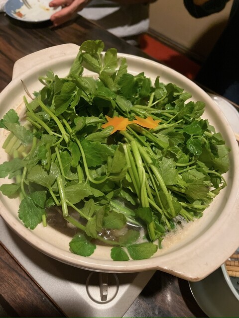 旬を感じるお料理が多く、どの季節に行っても楽しめます。今回は、秋らしく、いちじくや舞茸の天ぷら、さつまいもとエビのマヨネーズソース、せりのお浸しなどいただきました。セリ鍋の季節ももうすぐです!