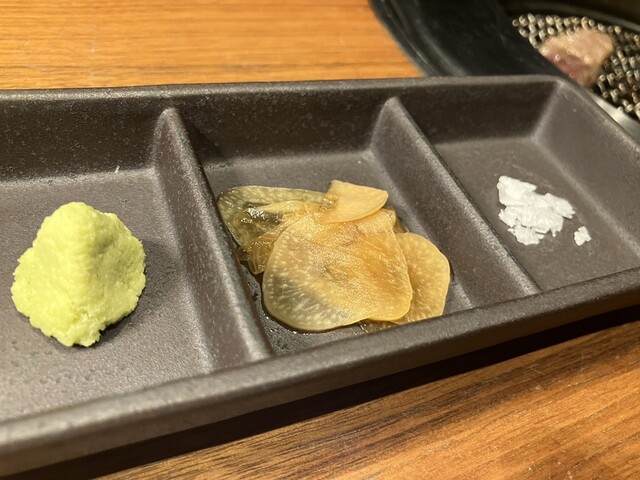 こだわりのわさび、ニンニク、岩塩で