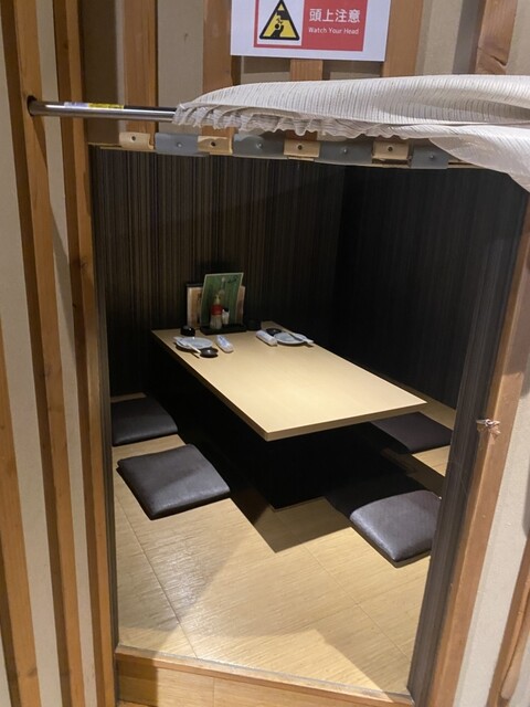 個室の入口がおしゃれで中は掘りごたつ、