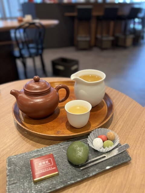 台湾の茶器ってなんでこんなに小っちゃいんでしょうね。継ぎ足し継ぎ足し飲む幸福感がある。そして永遠にスルスル飲めそうなお茶。紅茶や中国烏龍茶ではこういうわけにはいかない。そしてお湯を1度だけ追加してくれる。あとお茶菓子も付いてくる。